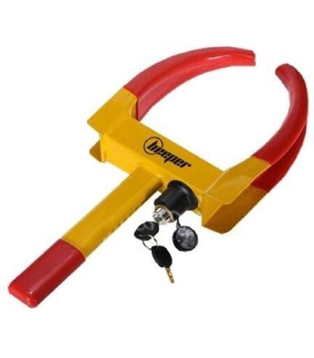 Sabot Antivol Bloque Roue HL01 Le sabot est particulierement adapté aux remorques, caravanes, vans a chevaux, camping-cars, véhicules de loisirs ... qui doivent etre entreposés temporairement dans des endroits a risque de vol. Le sabot est plus dissuasif et plus efficace contre le vol qu'un simple antivol de boule d'attelage. Général : Marque : BEEPER Type de produit : Bloque roue, Antivol Type de produit : Sabot antivol bloque roue Matière : Acier renforcé Couleur principale : Jaune Couleurs secondaires : Rouge Couleur(s) : Jaune et rouge Certifications et normes : CE Caractéristiques : Description du produit : Sabot ultra résistant en acier renforcé, installation rapide en moins de 30 secondes, universel sur , toutes les dimensions de roues, 2 clés de sécurité fournies. Type de véhicule : Voiture, Remorque, Caravane Compatible avec : Universel sur toutes les dimensions de roues allant jusqu'à 265 mm de large. Réglages : Cet antivol dispose de plusieurs niveaux de verrouillage, ...