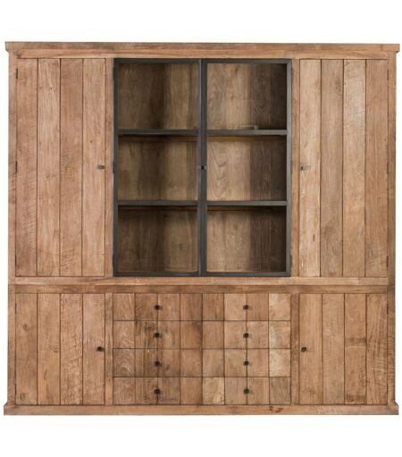 HELLIN Buffet vaisselier en bois recyclé 4 portes 8 tiroirs éclairage LED - LINAS