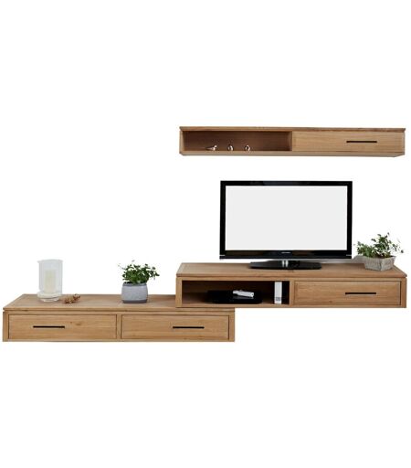 Hellin - Ensemble meuble tv suspendu en chêne clair 3 éléments - boston