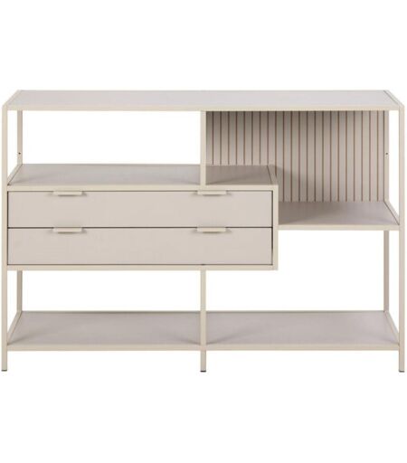 Hellin - Bibliothèque basse scandinave 2 tiroirs et 3 étagères métal grège - barry