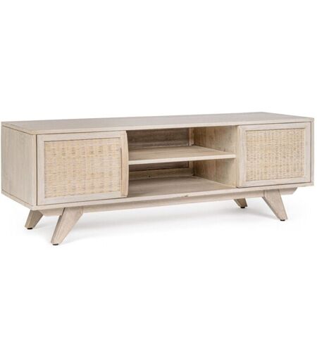 Hellin - Meuble tv en bois de manguier blanchi 2 portes 2 niches - shanna