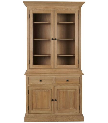HELLIN Buffet vaisselier en chêne 2 portes vitrées 2 tiroirs 2 portes bois - VICTORIA