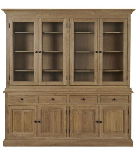 HELLIN Buffet vaisselier en chêne 4 portes vitrées 4 tiroirs 4 portes bois - victoria