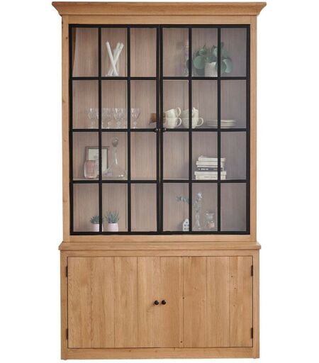 Le bahut en chêne et son vaisselier VICTORIA vous offrent un grand espace de rangement. Les portes vitrées de l'élément haut vous permettront d'exposer vos plus beaux objets ou votre vaisselle tandis que le buffet bas fermé par des portes pleines vous offrira un rangement caché. Un buffet vaisselier au style atelier Epuré et élégant, cet ensemble de rangement joue avec les lignes avec ses portes hautes et basses. Ses portes vitrées à carreaux et métal ne sont pas sans rappeler le coté atelier, rendu distingué par la noblesse de son bois. Un vaisselier 4 portes pratique et esthétique Ce vaisselier 4 portes allie style industriel et authenticité grâce à ses façades vitrées à carreaux et sa structure en bois massif. Les portes vitrées mettent en valeur vos objets décoratifs, tandis que les portes pleines du bas offrent un vaste rangement pour vaisselle et linge de maison. Ce meuble au design atelier est idéal pour donner du caractère à une salle à manger tout en maximisant la ...