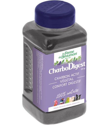 Le CharboDigest est 100% composé de charbon actif végétal. Il améliore le confort digestif de vos poules, volailles, pigeons, oiseaux, moutons, chèvres, chiens et chats. Pourquoi donner du CharboDigest à vos animaux ? Diarrhées, ballonnements, flatulences, ventre rouge, digestion difficile, sont autant de soucis qui peuvent arriver à vos animaux. Le charbon actif a un pouvoir antioxydant puissant qui améliore le confort digestif de vos animaux et les aide au quotidien. Sa forte capacité absorbante évite à vos animaux d’avoir des gaz. Pour les poules, volailles et pigeons. CharboDigest est à utiliser en cas de diarrhées, d’urines odorantes et de changement alimentaire. Il améliore la digestion et facilite les transitions. À utiliser notamment quand vous donnez des restes alimentaires à vos animaux. En effet, les aliments varient quotidiennement et vos volailles peuvent avoir des difficultés à bien les assimiler. Pour les oiseaux exotiques. CharboDigest est à utiliser en prévention du ...