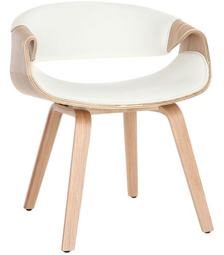 La chaise ARAMIS séduit par son look à l'inspiration nordique ! L'association du bois courbé placage érable et du polyuréthane blanc apporte de beaux contrastes matières et couleurs et permettent de mettre autant en valeur le bois clair intemporel que le revêtement moderne . Volumes recourbés, lignes arrondies et épurées forment un joli rappel du style 70's. Un mix réussi de tendances vintage et scandinave pour cette chaise design . ARAMIS est un intemporel qui s'adaptera facilement à votre intérieur. Une chaise avec accoudoirs , au faux-airs de fauteuil moderne et cosy ! Assise et dossier sont rembourrés et recouverts de polyuréthane blanc , une finition facile à entretenir , qui apporte une touche chic à l'ensemble. Le piètement plaqué bois clair , épais et robuste est quant à lui un véritable gage de robustesse et de stabilité. Grâce à cette chaise confortable , vous pourrez profiter de vos moments de partage en famille ou entre amis. Agréablement attablé autour d'une table à ...