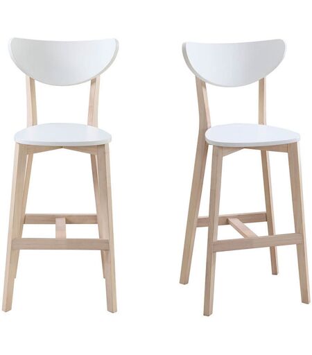Miliboo - Tabourets de bar scandinaves blanc et bois 75 cm (lot de 2) leena