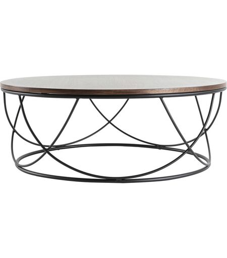 Miliboo - Table basse ronde bois foncé noyer et métal noir D80 cm lace