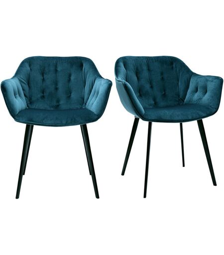 Miliboo - Chaises design en tissu velours bleu pétrole et métal noir (lot de 2) burton