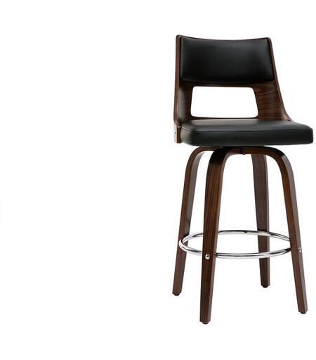 Miliboo - Tabouret de bar vintage pivotant noir et bois foncé garbo