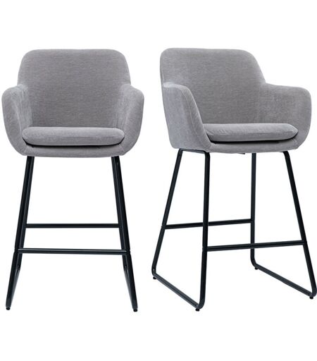 Miliboo - Tabourets de bar en tissu effet velours gris H65 cm (lot de 2) amika