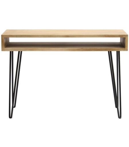 L'emblématique collection VIBES s'enrichit d'un nouveau bureau dans lequel on retrouve la ligne graphique qui fait le succès de cette collection. Ce bureau design en bois avec rangement se compose d'un double plateau (L116 cm) en manguier massif et d'un piètement en épingle noir . On aime particulièrement le charme authentique du manguier massif . Ce bois exotique au grain si particulier réchauffera n'importe quel intérieur. Avec son design versatile et essentiel, ce bureau « gain de place » pourra aussi faire office de console dans une entrée. Grâce à sa faible profondeur (45 cm) et sa grande légèreté visuelle, il est l'allié des petits espaces. Il s'intégrera à merveille dans une entrée à la décoration vintage ou une pièce de vie au style bohème chic. Pour un maximum de confort et de style, accompagnez-le d'un joli fauteuil de bureau . Ce bureau en bois massif et métal noir a été réalisé selon des techniques artisanales et ne ressemble ainsi à aucun autre. Il offre un rendu ...