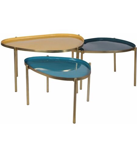 Miliboo - Tables basses gigognes laquées moutarde, bleu canard et bleu (lot de 3) zuria