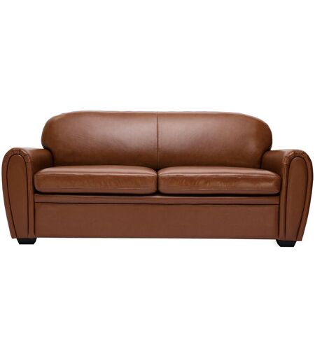 Miliboo - Canapé convertible vintage 3 places cuir marron et bois noir avec matelas 9 cm club