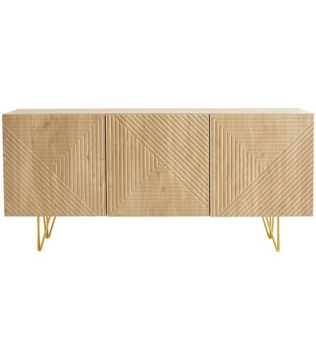 Miliboo - Buffet design gravé finition bois clair chêne et métal doré 3 portes L160 cm ozen