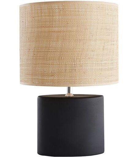 Miliboo - Lampe à poser en céramique noire mat et abat-jour en raphia naturel H40 cm tiga