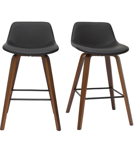 Miliboo - Tabourets de bar design noir et noyer H65 cm (lot de 2) nonie