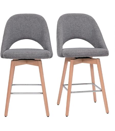 Miliboo - Tabourets de bar scandinaves tissu effet velours texturé gris et hévéa massif 65 cm (lot de 2) cosette
