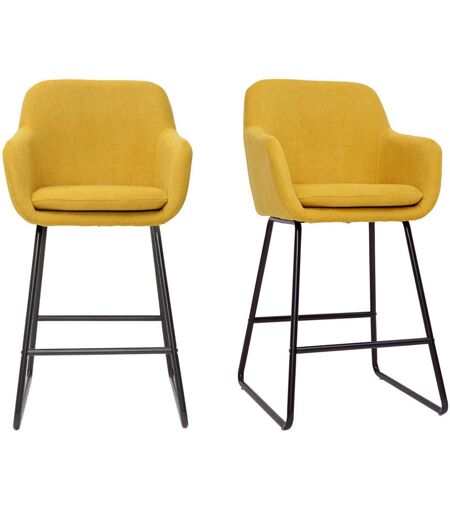 MILIBOO Tabourets de bar en tissu effet velours jaune moutarde H65 cm (lot de 2) AMIKA