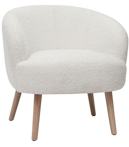 Miliboo - Fauteuil scandinave en tissu effet laine bouclée blanc cassé et bois clair maggie