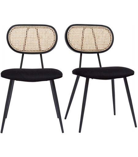 Miliboo - Chaises design noires en tissu velours, métal et cannage rotin naturel (lot de 2) tolma