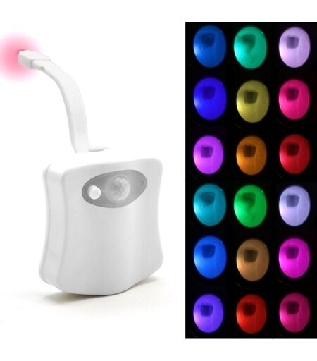 LAMPE INTELLIGENTE POUR TOILETTES - Évitez les chocs nocturnes avec cette lampe intelligente spécialement conçue pour les toilettes. DÉTECTION AUTOMATIQUE - Son détecteur de présence allume la lampe dès qu'une personne s'approche et l'éteint automatiquement après, économisant ainsi l'énergie des piles. INSTALLATION FACILE - Se fixe facilement sur le rebord de la cuvette, offrant un éclairage doux avec ses 8 changements de couleur. DÉTECTION - Angle de détection de 135° et distance de détection jusqu'à 3 mètres. CARACTÉRISTIQUES TECHNIQUES - Fabriquée en ABS, alimentée par 3 piles AAA (non fournies), puissance de 1W - 4.5V, clip de 11 cm de long. Garantit une qualité et une sécurité conformes aux normes européennes.angle de détection de 135° et distance de détection jusqu'à 3 mètres. ...