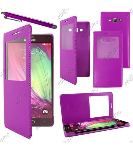 Ebeststar ® Housse Coque Etui Smart View Cover Type S-View Portefeuille Livre Pour Samsung Galaxy A3 Sm-A300f, Couleur Violet + Stylet + Film Protection D'écran