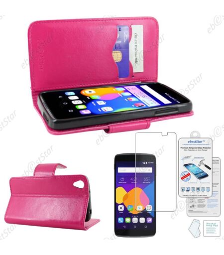 Ebeststar® Film Verre Trempé + Housse Portefeuille Coque Etui Protection Folio Pour Alcatel Onetouch Idol 3 Écran 5.5 Pouces, Couleur Rose