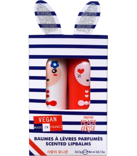 Découvrez ce coffret 'Paris' de 2 baumes à lèvres parfums cerise et fraise : parfait pour offrir, ou pour soi ! Riche en beurre de karité et en huile de macadamia, ils nourrissent, réparent, adoucissent et protègent vos lèvres pour un confort absolu . Formule sans paraben ni allergène. Fabriqué en France et VEGAN. ...
