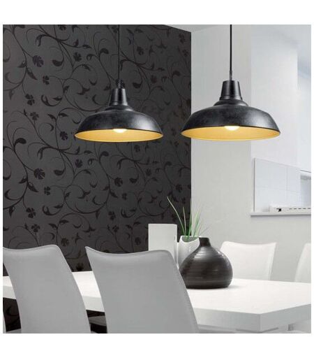 Donnez du style dans votre intérieur avec un lustre d'esprit industriel twisté par une finition effet moucheté qui calme le côté un peu brut de fonderie de la suspension et apporte un charme fou à l'ensemble. Réglable en hauteur à l'installation. Classe II Jolie découverte que ce lustre industriel en métal moucheté impression pierre noire, totalement adapté à votre décoration de type vintage. C'est la suspension noire idéale pour illuminer une table de cuisine en vieux bois par exemple ou dans un esprit plus contemporain, les installer par 2 ou 3 au-dessus d'une table contemporaine. On peut aussi donner du rythme dans un couloir en les alignant. On choisit ce luminaire design pour son allure décalée et on craque pour sa finition mouchetée qui le rend inimitable ! Caractéristiques techniques du lustre noir Nexi : Hauteur totale : 150 cm Diamètre abat-jour : 33 cm Lustre en métal noir finition mouchetée métal, fil électrique textile noir. Nécessite 1 ampoule E27 led de 20W max. non ...