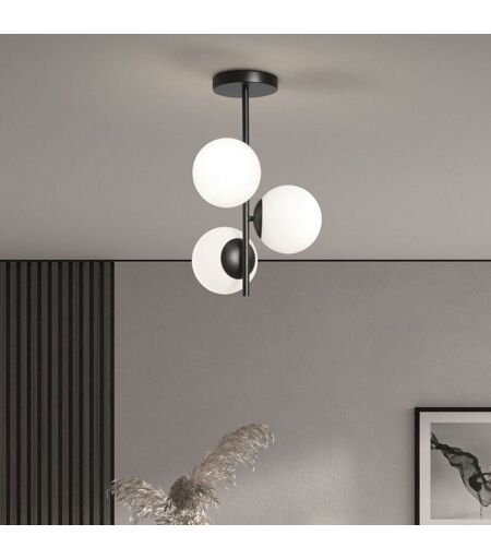 Millumine - Plafonnier Rondo Noir Mat 3 Globes Verre