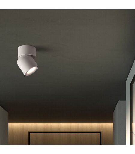 Petit spot plafonnier blanc mat à tête rotative, parfait pour apporter un éclairage de qualité, même dans les plus petits espaces et votre salle de bain ! Ce spot en saillie vous permet d'apporter une lumière descendante et dirigeable dans toutes les pièces. Nécessite 1 ampoule GU10 de 10W max. Classe II et protection contre l'eau IP44 Petit par son volume et hyper design par sa forme, voici un petit spot couleur blanc mat qui se glissera dans toutes les pièces et les pièces d'eau pour mettre son flux lumineux orientable, au service de tous vos besoins d'éclairage. Nécessite 1 ampoule led GU10 de 10W max non incluse. Caractéristiques techniques du spot blanc mat : Hauteur : 12,1 cm Diamètre support : 9,4 cm Diamètre éclairage : 8,5 cm Spot rotatif couleur blanc mat. Poids : 0.5 Kg Nécessite 1 ampoule GU10 de 10W max. non fournie. IP44 - Classe II Garantie 2 ans. ...