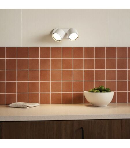 Applique double spot en métal de couleur blanc composée de 2 têtes orientables avec 2 ampoules led remplaçables incluses. Parfaite en applique de chevet ou dans une cuisine, cet éclairage d'appoint se glisse partout. Applique d'intérieur en métal blanc avec un design tout en rondeur et qui propose 2 diffuseurs orientables avec 2 ampoules led GX53 de 9W chacune incluse en blanc neutre avec une puissance lumineuse conséquente pour s'adapter à vos besoins d'éclairage. A utiliser en applique tête de lit, dans une cuisine comme éclairage d'appoint pour un look total blanc. Caractéristiques techniques du double spot Dodo : Base et corps de lampe en métal verni mat avec traitement époxy de couleur blanc équipé de 2 diffuseurs orientables avec source led GX53 remplaçable de 9 Watt chacune pour 3000K blanc chaud neutre (accepte 2 ampoules GX53 max. 2x15W si vous souhaitez un éclairage plus puissant) - Poids : 0,93 Kg - Largeur : 22 cm - Hauteur : 11,5 cm - Profondeur : 8,5 cm IP20 - Classe II ...