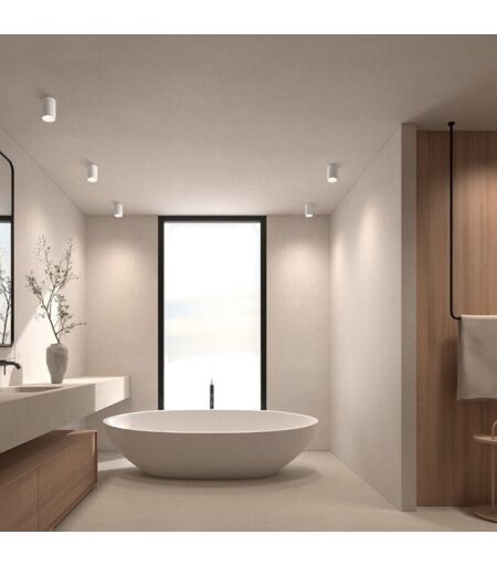 Plafonnier spot cylindrique en métal blanc, spécialement conçu pour les pièces d'eau grâce à sa certification IP44. Avec ses dimensions compactes (H 8,5 cm, Ø 6 cm), il apporte une touche moderne et discrète à votre salle de bain tout en assurant un éclairage efficace et sécurisé. Conçu pour accueillir une ampoule GU10 max. 10W (non incluse). Classe II - IP44 Apportez une touche d'élégance et de modernité à votre salle de bain avec ce plafonnier spot cylindrique en métal blanc. Conçu pour les environnements humides, il bénéficie de la certification IP44, garantissant une protection contre les projections d'eau. Compact (H 8,5 cm, Ø 6 cm), il s'intègre harmonieusement dans toutes les configurations, offrant un éclairage optimal et sécurisé. Idéal pour les salles de bain contemporaines, ce spot associe design épuré et fonctionnalité pour illuminer votre espace avec style et choix de la puissance avec son ampoule GU10 (non incluse). Caractéristiques techniques : Hauteur : 8,5 cm Diamètre ...