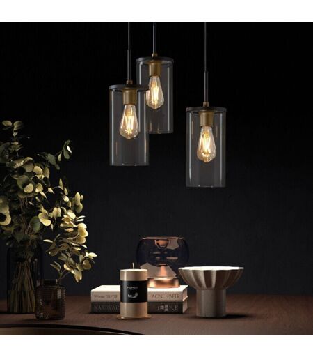 Avec son design épuré mêlant métal noir, laiton patiné et verre transparent, la suspension Trio offre une touche contemporaine raffinée. Dimensions : hauteur réglable jusqu'à 150 cm, diamètre 35 cm. Idéale pour salons, cuisines et salles à manger modernes. Apportez une atmosphère élégante et chaleureuse à votre espace avec la suspension Trio. Conçue autour de trois abat-jours cylindriques en verre transparent, associés à des détails en métal noir mat et laiton patiné, cette suspension offre un design à la fois minimaliste et sophistiqué. Son format généreux (diamètre 35 cm) et sa hauteur réglable jusqu'à 150 cm en font une pièce maîtresse idéale pour décorer vos grands espaces : cuisine ouverte, salle à manger, salon ou hall d'entrée. Grâce à la transparence du verre et à l'élégance des finitions métalliques, Trio diffuse une lumière douce et chaleureuse, tout en conservant une présence visuelle légère et aérienne. Parfait pour un intérieur contemporain, industriel ou même scandinave, ...