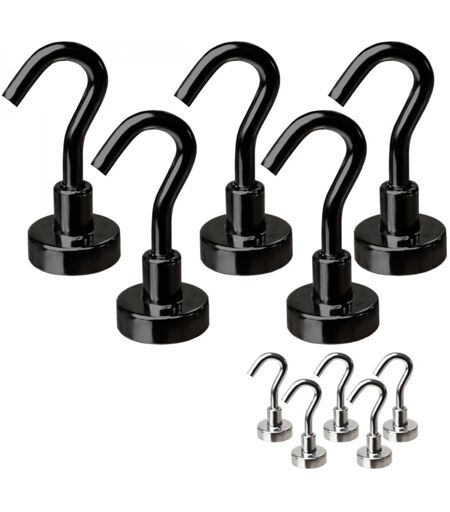 Linxor - Lot de 5 crochets magnétiques anti-rouille diamètre 3 mm - KN16 - Noir
