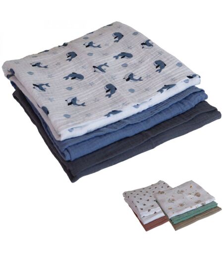 Lot de 3 langes bébé, serviettes absorbantes et respirantes - 100% mousseline de coton - 30 x 30 cm – Baleine - Monsieur Bébé