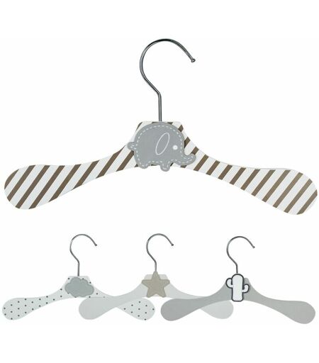 MONSIEUR BÉBÉ Lot de 10 cintres en bois 28 cm pour bébé, enfant avec crochet pivotant - Cintre rayé blanc et marron et éléphant gris