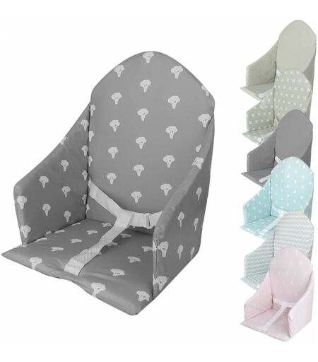 Coussin d'assise universel Miam avec harnais pour chaise haute bébé - Gris foncé brocolis Monsieur Bébé