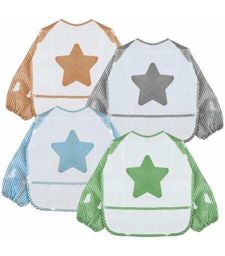 Lot de 4 bavoirs pour bébé imperméables - Manches longues Monsieur Bébé