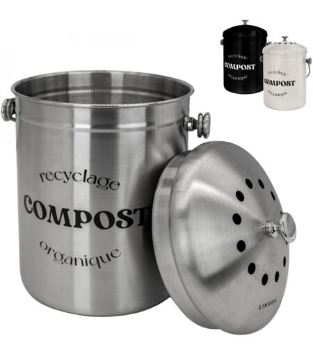 Linxor - Composteur, bac, poubelle à compost de cuisine 5L rond en Inox - Gris