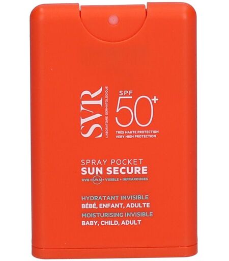 SUN SECURE Spray pocket SPF50+ une très haute protection solaire dans un tout nouveau format de poche encore moins encombrant qu’un téléphone. Le spray permet une application express et homogène à emporter partout avec soi : en terrasse, en balade, en week-end au soleil, à la mer ou à la montagne. Sa texture lactée et ultra-fine s’étale très facilement et laisse un fini non gras et non collant. La peau est hydratée. Son délicat parfum d’été donne envie d’en réappliquer encore et encore. Résiste à l’eau, à la transpiration et aux frottements. SUN SECURE Spray pocket SPF50+ respecte l’environnement marin. Il a passé les tests d’éco-toxicité sur des algues (ISO 10253) et sur des invertébrés aquatiques (ISO 14669). Deux espèces appartenant à la famille des zooplanctons et phytoplanctons, indispensables au bon développement des coraux. Indication Peaux hypersensibles au soleil. Bébé, enfant, adulte. Visage et zones sensibles exposées (nez, pommettes, oreilles, mains…). SUN SECURE : SE PROTÉGER EN TOUTE TRANSPARENCE UVB + UVA + VISIBLE + INFRAROUGES Conseil d'utilisation Appliquer généreusement et uniformément avant l’exposition. Renouveler fréquemment l’application pour maintenir la protection, surtout après avoir transpiré, nagé ou s’être essuyé. Appliquer généreusement et uniformément avant l’exposition pour bien couvrir la surface exposée. Réduire cette quantité diminue nettement le niveau de protection. Renouveler fréquemment l’application pour maintenir la protection, surtout après avoir transpiré, avoir nagé ou s’être essuyé. Eviter l’exposition solaire aux heures d’ensoleillement maximales (entre 12 et 16h), sinon prévoir une protection vestimentaire. Les coups de soleil sont dangereux, surtout chez l’enfant. Utiliser des produits de protection solaire appropriés à votre type de peau. L’utilisation de ce produit ne doit pas inciter à s’exposer longtemps au soleil. La surexposition au soleil est une menace sérieuse pour la santé. Ne pas exposer les bébés et les jeunes enfants directement au soleil. Toujours utiliser des vêtements de protection pour votre bébé et appliquer la protection solaire uniquement sur les zones exposées. Principaux actifs Très haute protection UVA et UVB grâce à l’association brevetée*** de 4 filtres solaires organiques, photostables, qui forme une protection physique en surface : BIS-ETHYLHEXYLOXYPHENOL METHOXYPHENYL TRIAZINE (Filtre UVB et UVA) ETHYLHEXYL TRIAZONE (Filtre UVB) DIETHYLAMINO HYDROXYBENZOYL HEXYL BENZOATE (Filtre UVA) DIETHYLHEXYL BUTAMIDO TRIAZONE (Filtre UVB) Les filtres suspectés d’être perturbateurs endocriniens, néfastes pour l’écosystème marin et ceux suspectés d’être irritants ont été écartés de la charte de formulation SVR. Composition AQUA/WATER/EAU, DICAPRYLYL ETHER, DIISOPROPYL ADIPATE, DIETHYLAMINO HYDROXYBENZOYL HEXYL BENZOATE, ETHYLHEXYL TRIAZONE, C12-15 ALKYL BENZOATE, BIS-ETHYLHEXYLOXYPHENOL METHOXYPHENYL TRIAZINE, DIETHYLHEXYL BUTAMIDO TRIAZONE, SILICA, BEHENETH-25, PROPANEDIOL, PENTYLENE... ...