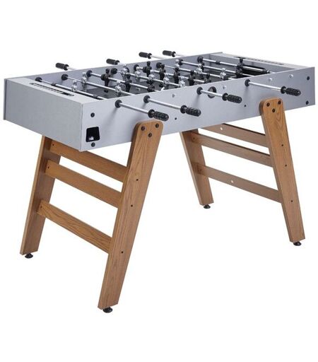 Moderne, avec une caisse de couleur grise et des pieds couleur ch?ne, la babyfoot Orlando s'adapte ? tous types d'int?rieurs. Peu encombrant, sa structure assure une stabilit? renforc?e pour un confort d'utilisation optimal. A vous les parties entre amis ou en famille ? toute heure, et ce, d?s le plus jeune ?ge. Fabriqu? en MDF (m?lamin? haute densit?) et PVC, ce babyfoot aux barres t?lescopiques vous assure des parties endiabl?es ! Comportant 22 joueurs, ce babyfoot est ?galement livr? avec 2 balles de 31mm. Les amateurs appr?cieront ses poign?es longues synonymes d'une meilleure prise en main. Caract?ristiques ? Composition : MDF E2 + PVC ? Dimensions : 122 cm x 96 cm (avec poign?es assembl?es) / 61 cm ? Dimensions surface de jeu : 101,5 cm x 58 cm ? Hauteur : 79 cm ? Poign?es longues en ABS ? Joueurs en ABS (acrylonitrile butadi?ne styr?ne) ? Epaisseur du plateau : 3mm ? Diam?tre des barres : 12.7mm (en m?tal et t?lescopiques) Contenu ? Baby-foot complet ? 2 balles de 31mm de diam?tre ? Manuel d'instructions ...
