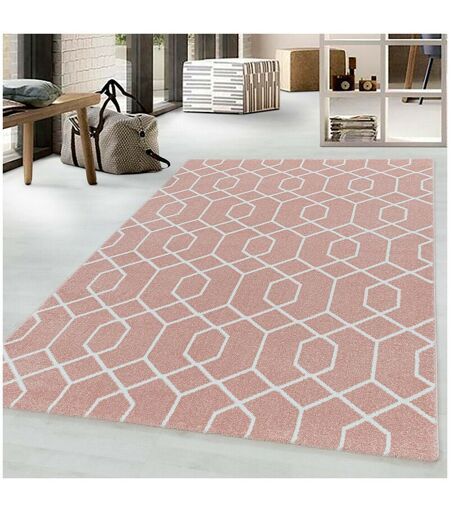 Allotapis - Tapis scandinave à courtes mèches graphique Huppe Rose 80x250