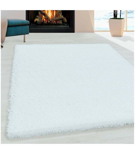 Allotapis - Tapis shaggy design uni rectangulaire Gadol Blanc 80x150