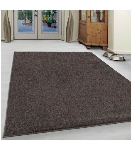 Allotapis - Tapis uni à courtes mèches pour salon Rush Marron 200x290