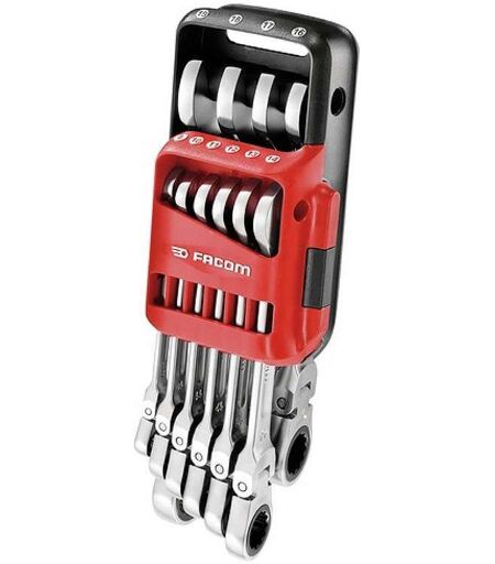 Jeu de 10 clés mixtes à cliquet articulées FACOM 467BF.JP10PB 8 à 19 mm