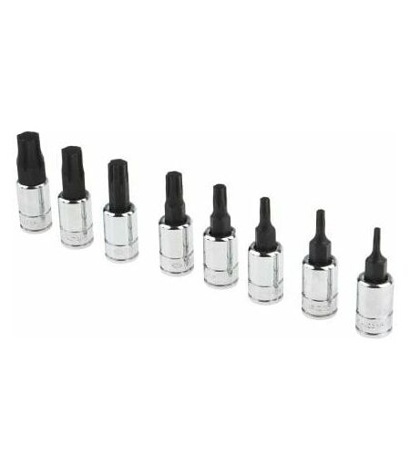 Type de tête = Hexagonal Type = Douilles pour embout Nombre de pièces = 8 Longueur hors tout = 37 mm Profil spécial OGV Grip pour les têtes à six pans creux endommagées. Contient : embout non amovible RTM.GRP 2-2,5-3-4-5-6-7-8mm. Finition ...