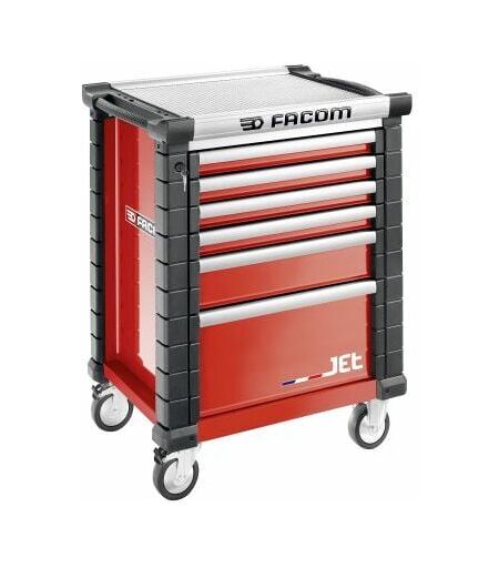 Description générale La servante JETM3 est un chariot à roulettes pratique et fonctionnel, conçu pour l'organisation et le stockage d'outils et d'accessoires. Avec son large plateau en aluminium, elle offre une surface de travail augmentée de 25%, facilitant ainsi l'accès à vos outils indispensables lors de vos opérations manuelles. Fabriquée en France, elle se distingue par sa robustesse et ses fonctionnalités innovantes. Spécifications techniques Matériau : Acier Nombre de tiroirs : 6 Dimensions externes : L774 x D546 x H972 mm Dimensions internes des tiroirs : L569 x D421 x H60 mm Capacité de charge : 140 kg (plateau jusqu'à 500 kg) Compatibilité et accessoires Poignées doubles de chaque côté pour un transport facilité Rail de fixation des accessoires pour une compatibilité accrue avec divers accessoires latéraux Installation La servante est prête à l'emploi et ne nécessite aucune installation complexe. Il suffit de la déballer et de la placer à l'endroit souhaité. Utilisation ...