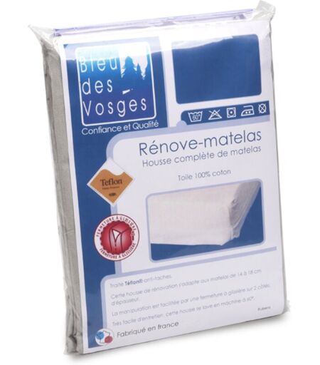 HOUSSE DE MATELAS A GLISSIERE RUBENS - 80x200 CM POUR MATELAS 18 CM A 22 CM Côté technique : - 100% Coton 57 fils /cm2 - 115 g/m2 - Traitement TEFLON - Anti tâches - Glissière en L (2 cotés) - Pour matelas de 18 à 22 cm - Label Vosges-Terre Textile - Lavable à 60°C - Repassage à 150°c - Fabriqué en France (origine France) Aide au choix : La housse de rénove matelas RUBENS existe en 2 hauteurs. - Housse pour matelas de 14 à 18 cm - Housse pour matelas de 18 à 22 cm Côté pratique : -Le rénove-matelas RUBENS est une housse intégrale pour matelas, idéal pour donner une seconde jeunesse à un matelas dont la housse serait salie ou tâchée. -Le rénove-matelas RUBENS est fabriqué à partir de coton épais, traité TEFLON: Ce procédé d'imprégnation de la fibre de coton, confère des propriétés anti-adhésif, et donc anti-tâches, et vous garanti une durabilité accrue de votre housse. - Le rénove-matelas RUBENS est testé dermatologiquement, et respecte les peaux les plus sensibles. - Le rénove-matelas ...